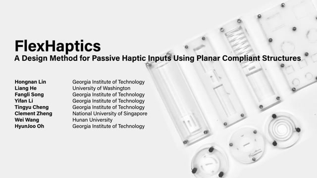 FlexHaptics: A Design Method for Passive Haptic Inputs Using Planar Compliant Structures, CHI 2022: DOI PDF